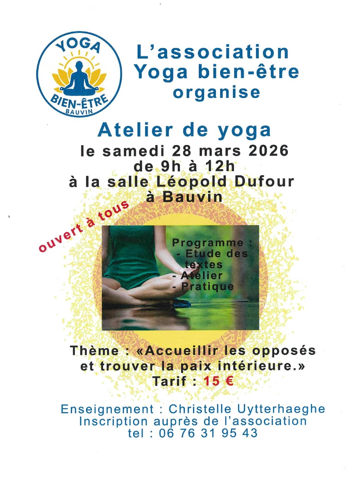 L'association Yoga Bien-Être organise des ateliers de yoga