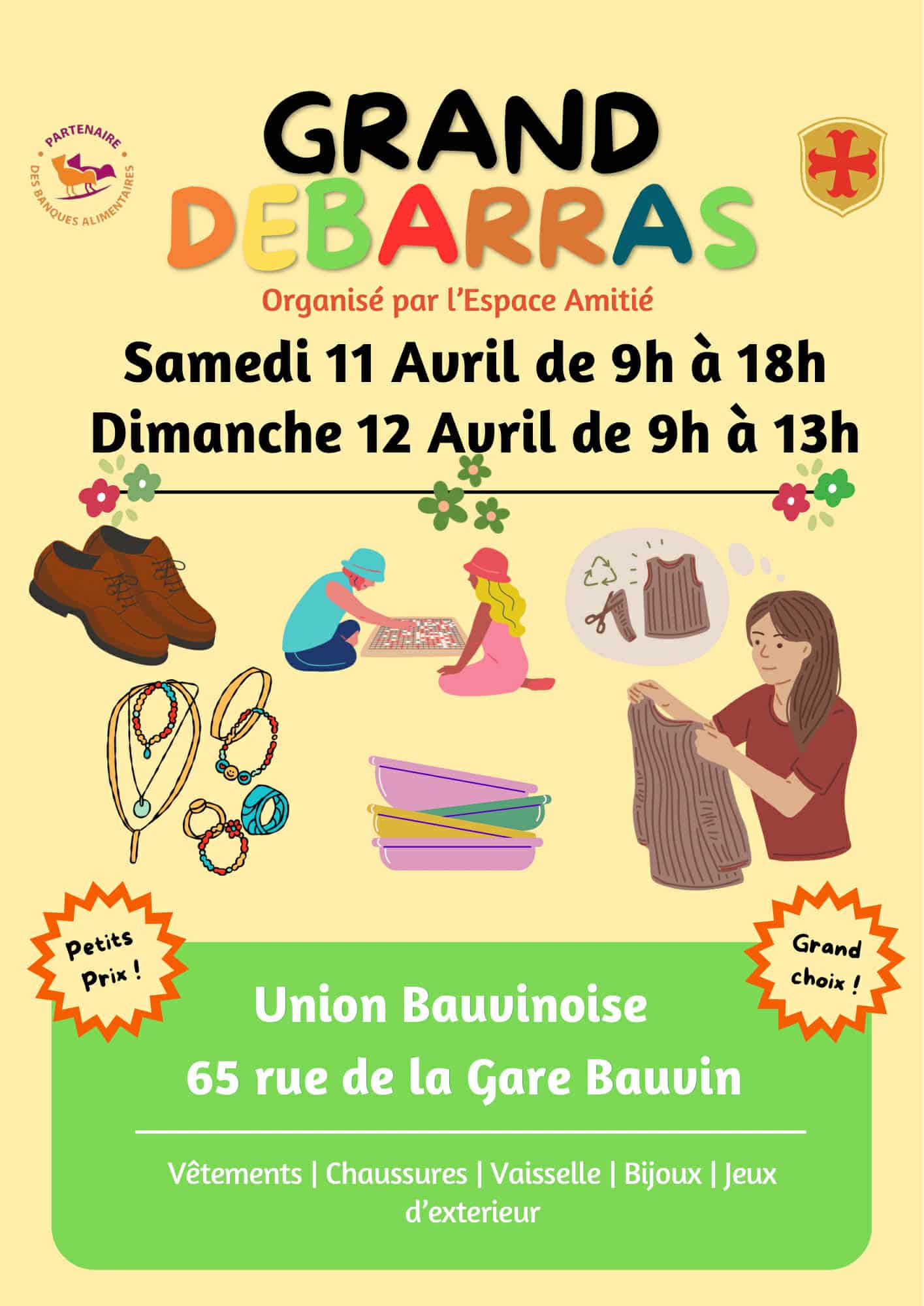 Espace Amitié organise son 'Grand Débarras' 📆 le weekend des 11 et 12 avril à l'Union Bauvinoise.