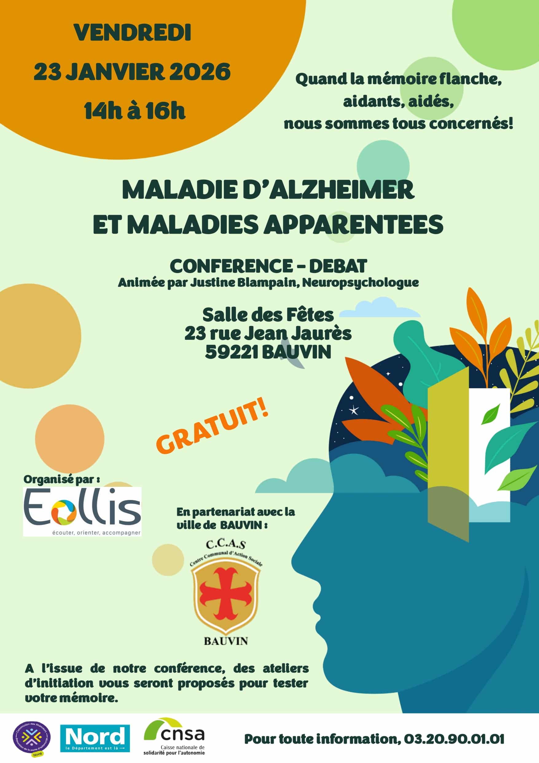 le vendredi 23 janvier 2026, de 14h à 16h, assistez à une après-midi de débat et de conférence autour de la maladie d'Alzheimer et maladies apparentes.